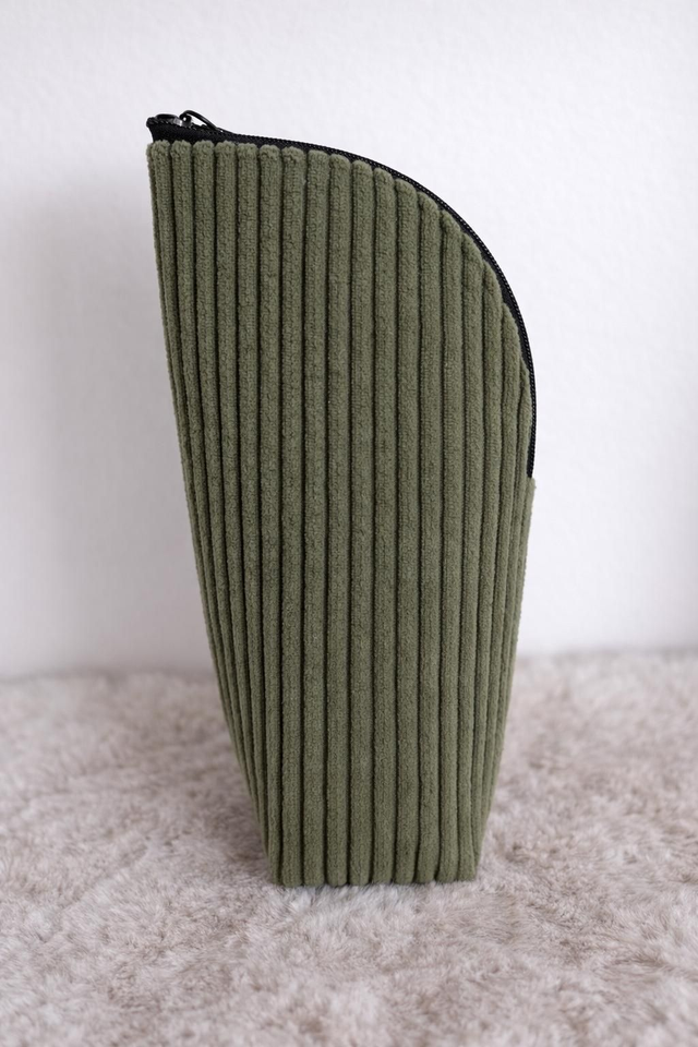 Trousse à maquillage nomade velours côtelé kaki