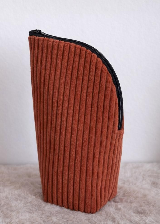 Trousse à maquillage nomade velours côtelé terracotta