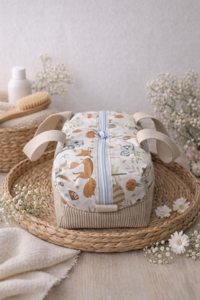Cette trousse de toilette pour enfant fait main , aux dimensions pratiques de 24 cm de longueur, 12 cm de hauteur et 14 cm de profondeur, est idéale pour ranger les essentiels du quotidien ou pour les voyages.